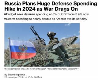 Детали: Россия планирует в следующем году увеличить расходы на оборону с нынешних 3,9% ВВП до 6% (112 млрд долл.), пишет Bloomberg.