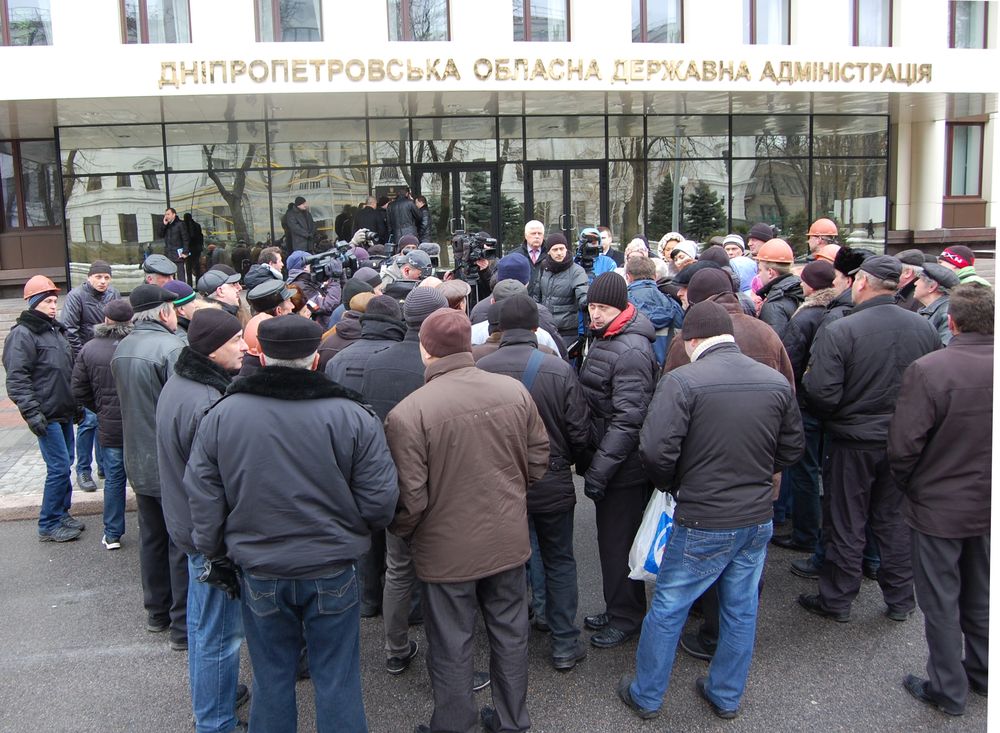 27 марта под стенами Днепропетровской облгосадминистрации состоялась акция протеста рабочих государственного ПАО «Днепрометрострой». Проходчики требовали самого простого дать им работу и зарплату. А для этого разблокировать счета предприятия и предоставить ему финансирование. Последний раз работники видели зарплату в ноябре прошлого года.