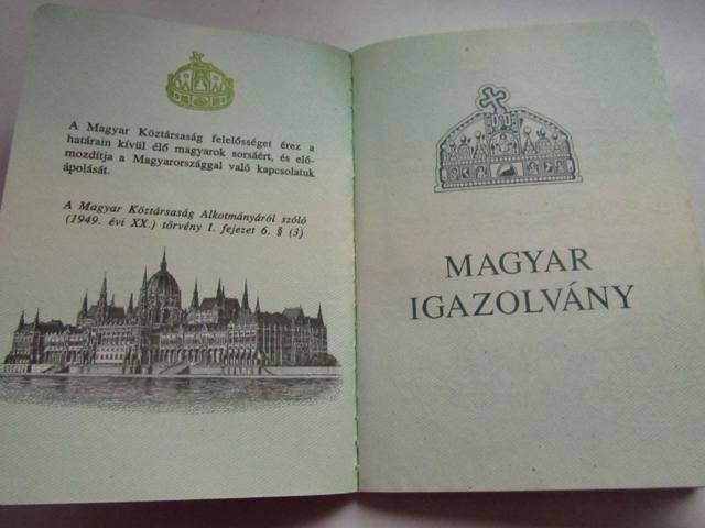 Это не паспорт, а документ, который дает мне право раз в год проехать по железной дороге в Венгрии со значительной скидкой. Но называется он «венгерское удостоверение»