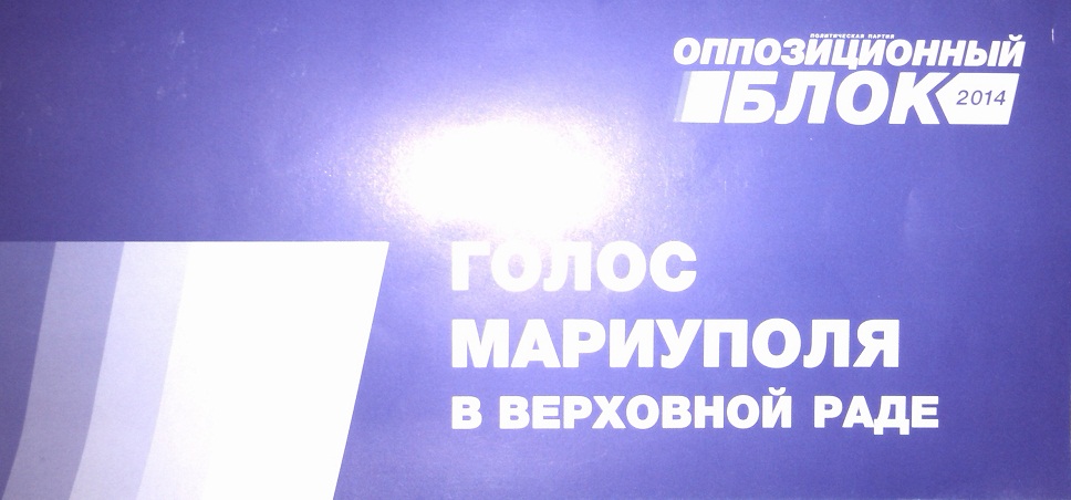 Тем временем особые надежды на Мариуполь, судя по всему, возлагает «Оппозиционный блок», в списке которого идут представители «Азовстали» и ММК Ильича. «Интересы Мариуполя нужно отстаивать в Киеве! — говорится в листовке „неорегионалов“. — Иначе наш город так и останется для киевской власти всего лишь дойной коровой!».