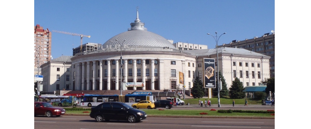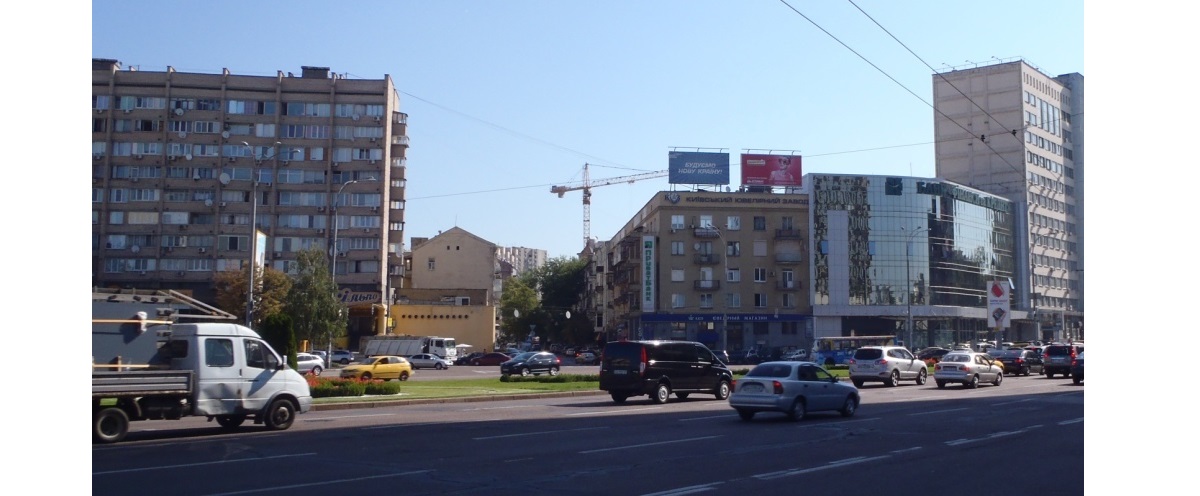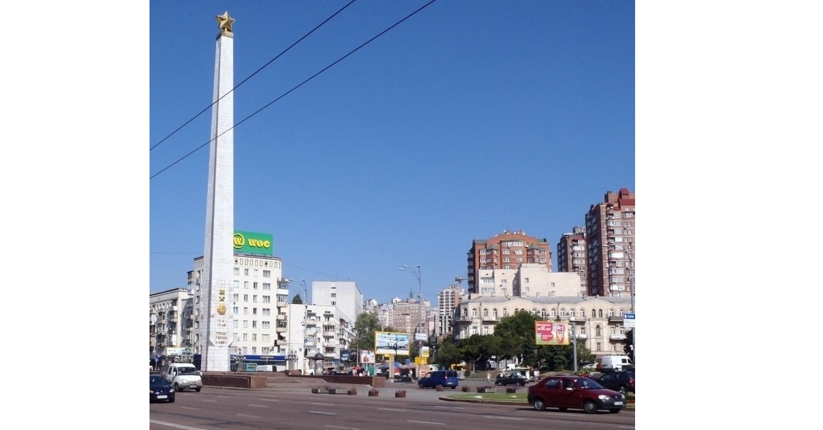 Масштабно Киев был реконструирован накануне Олимпиады 80-го года. Однако эта площадь изменилась чуть позже. В 1981-82 годах на ней появился обелиск и подземный переход, а также отстроено длинное жилое здание по адресу Дмитриевская, 2 (в предыдущем отрывке на его месте ещё стоят развалины). Результат реконструкции виден в этих двух отрывках из мелодрамы Николая Рашеева «Рассмешите клоуна» (1984):