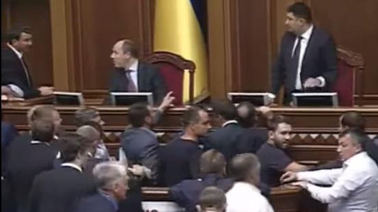 Несколько депутатов возмутились тем, что постановление голосовалось за основу и в целом, подбежали к трибуне и начали высказывать свое недовольство. Среди них был и Владимир Парасюк. После этого в одном из проходов возникла потасовка.