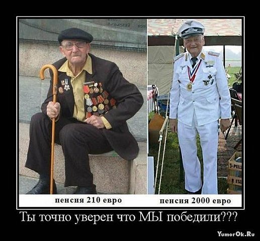И последнее. Мы не одиноки на планете. Каждая нация, любое государство выпячивает свои военные победы. Даже если с победами было туго можно выставлять напоказ героизм и подвиги. Ну так нечего стесняться, вывалим всё! Многие ветераны Великой Отечественной одерживали победы в Корее и заливали кровью Будапешт. Их сыновья и младшие братья грохотали танками по Праге и давали ценные военные советы во Вьетнаме и Йемене, инструктировали братских арабов, как бы половчее взять штурмом Хайфу и Иерусалим. Внуки пришли на помощь афганскому народу и задержались там на десять лет.