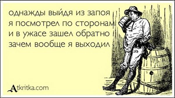 Вот вам и выход из кризиса и решение вопроса неподъемных платежек: не можешь решить проблему — пей, и проблема тут же потеряет свою значимость. Как видите, все гениальное действительно очень просто.