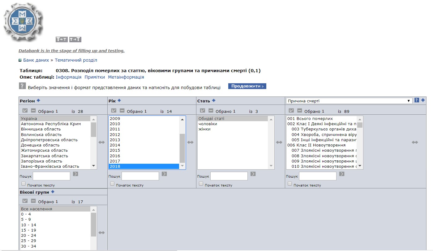 В том числе эта статистика отсутствует и на сайте Госкомстата Украины. Там, впрочем, есть очень интересный калькулятор. Используя его можно вычислить смертность от пневмонии начиная с 2005 по 2018 год. Правда, не помесячно.