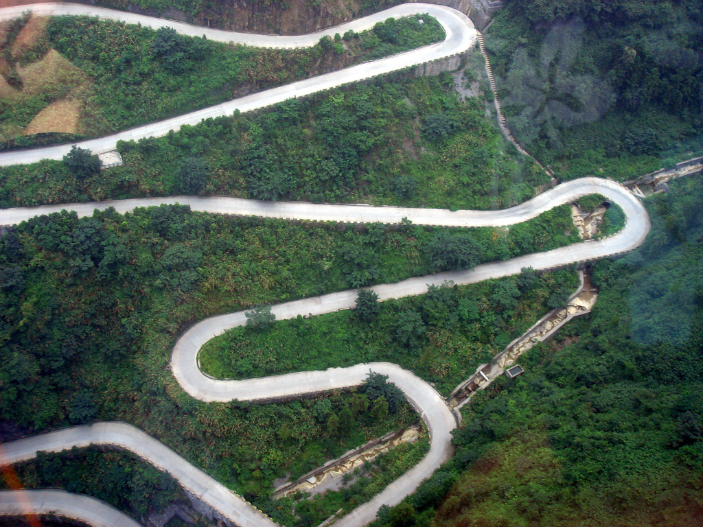 Китайская «Дорога в небеса» в Тянь Мэн Шане, провинция Хунань. Самый низкий ее участок на 200 м ниже уровня моря.
