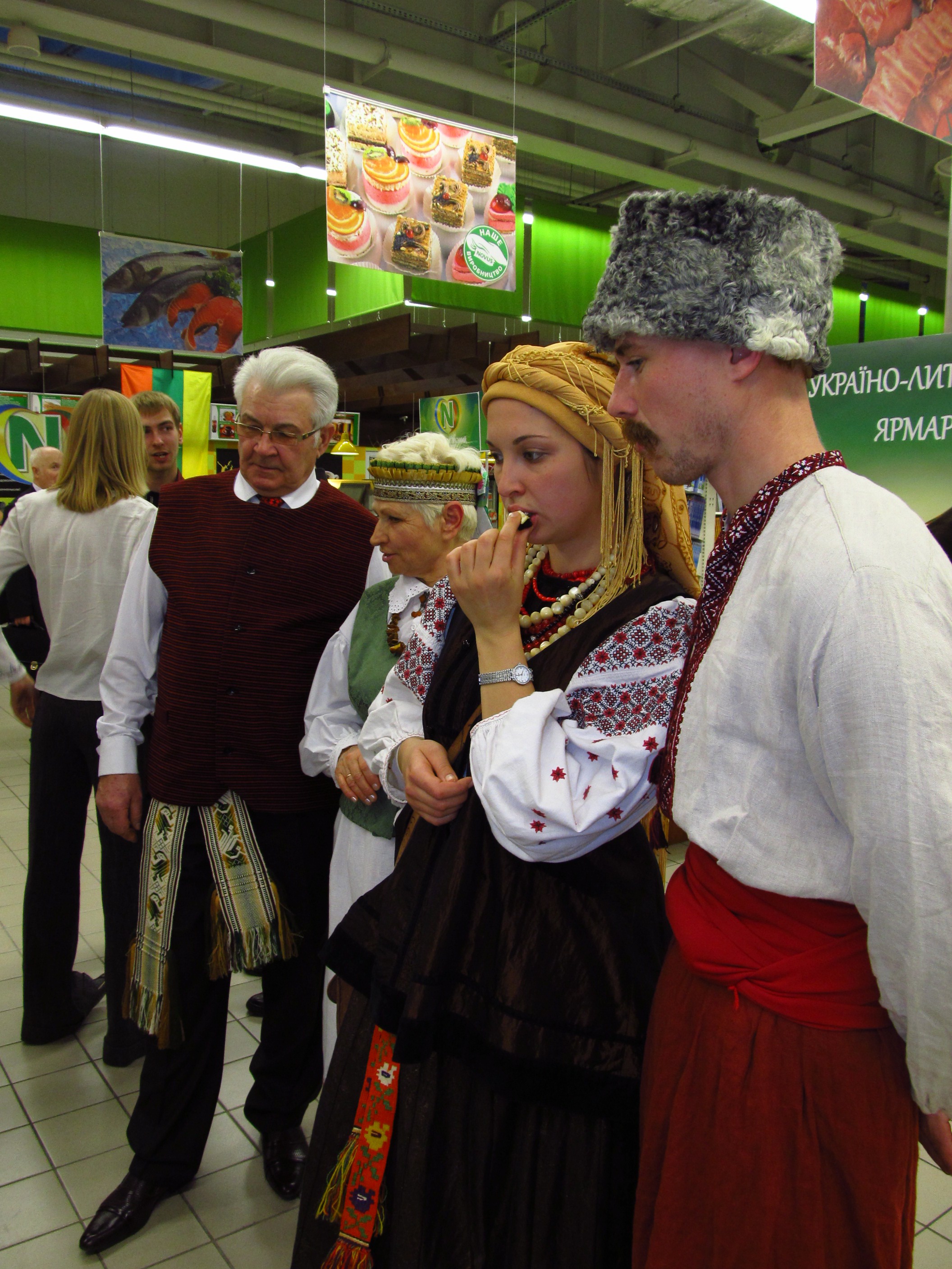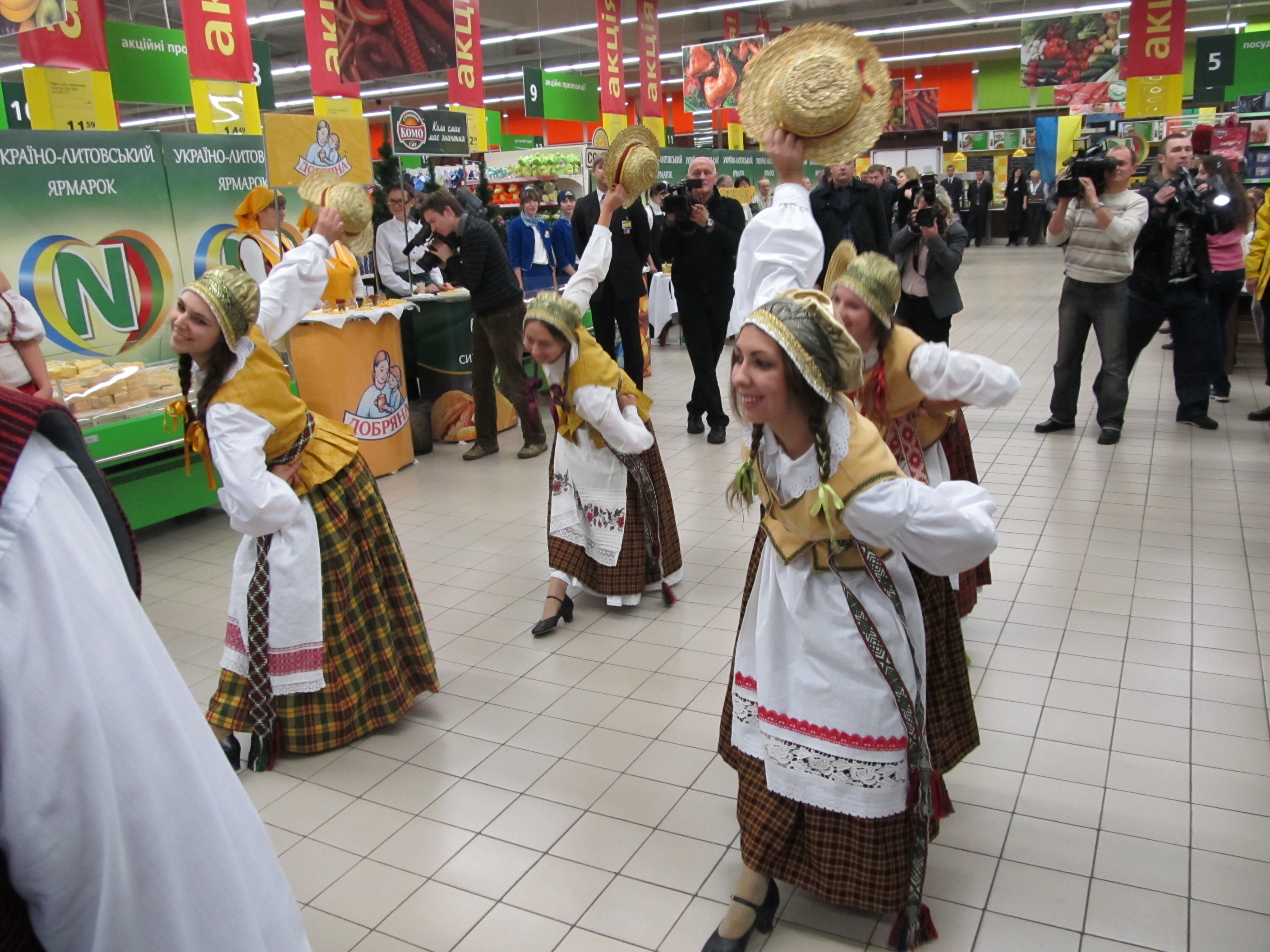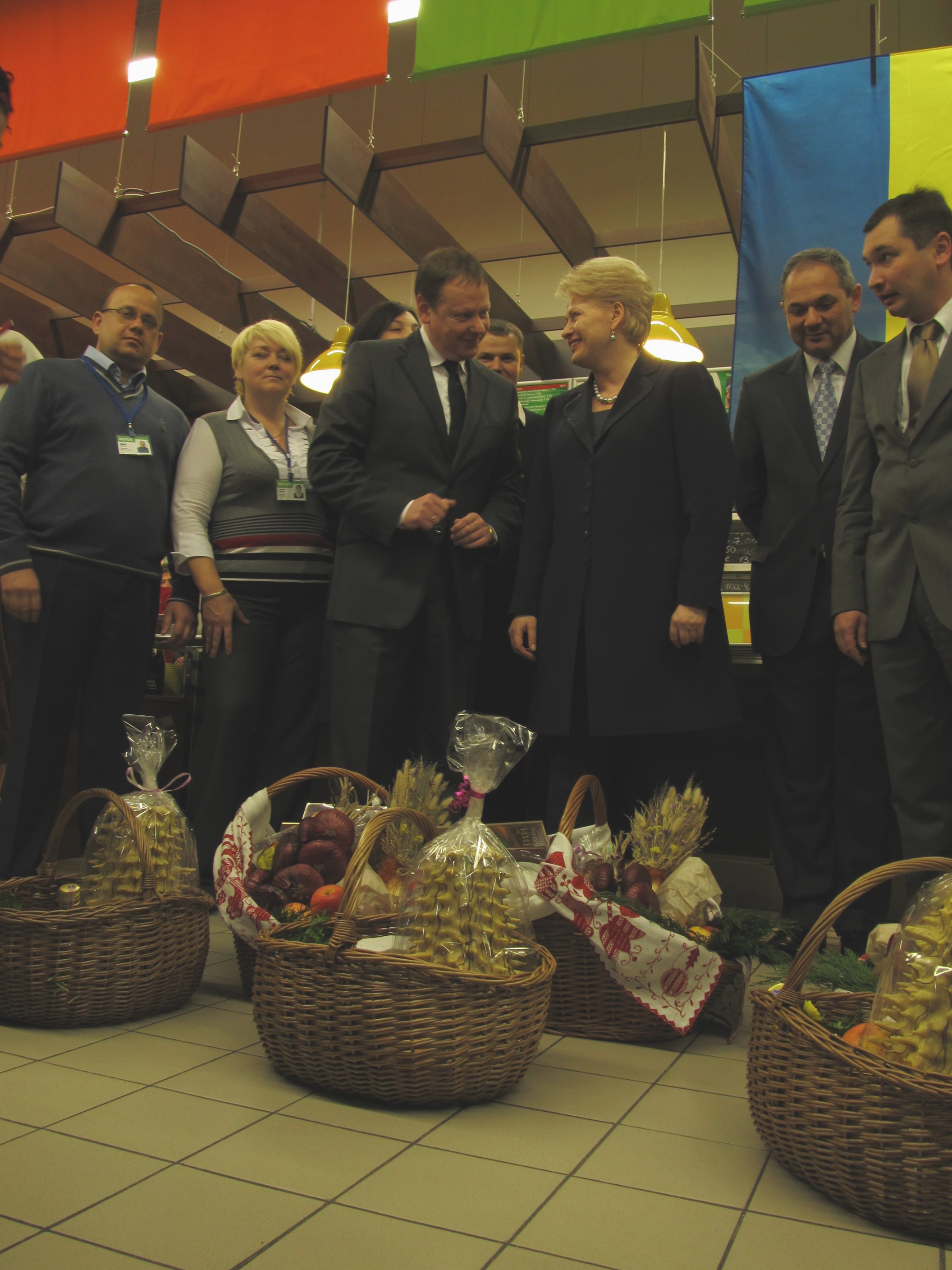 В знак украино-литовской дружбы г-же Грибаускайте преподнесли корзины, наполненные традиционными украинскими и литовскими яствами. Взглянув на эту красоту, президент Литвы заметила: «Украинские корзины побольше будут!»
