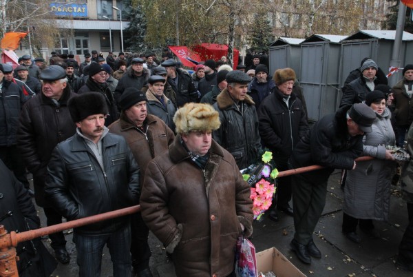 Сейчас около 300 чернобыльцев находятся возле здания Пенсионного фонда. В разведенном костре они демонстративно сожгли агитационную куртку с надписью «Янукович наш президент!».