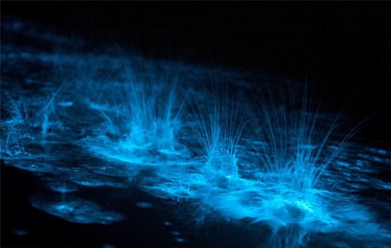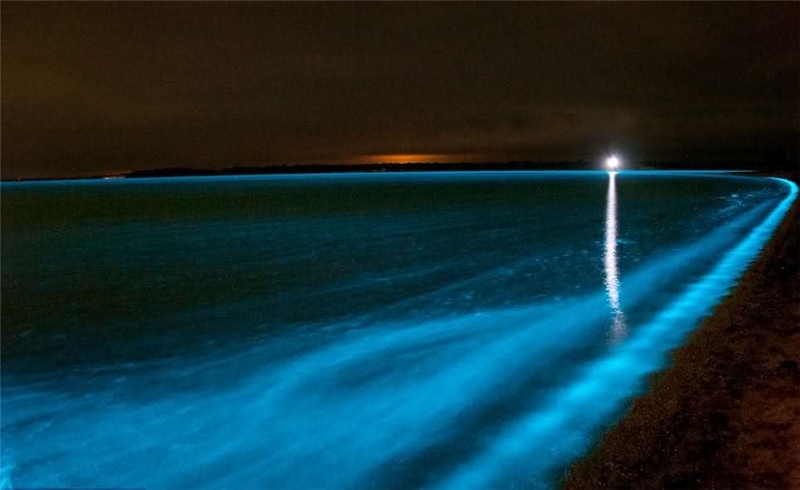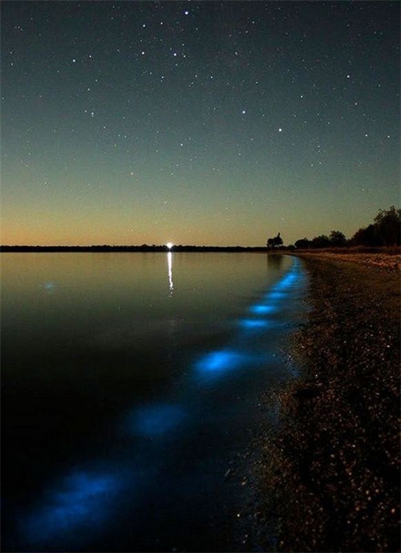 Гипслендские озера, расположенные в Австралии, иногда становятся очень необычными водоёмами. Фотограф Phil Hart запечатлил «неоновый» свет ночного озера. Причиной является биолюминесценция химические реакции жизнедеятельности живых организмов, населяющих воды озера. В результате биолюминесценции высвобождается большое количество энергии, выделяемой в виде света.
