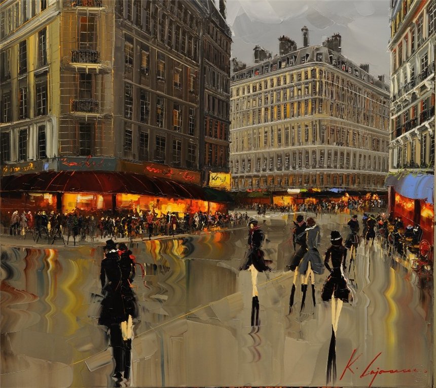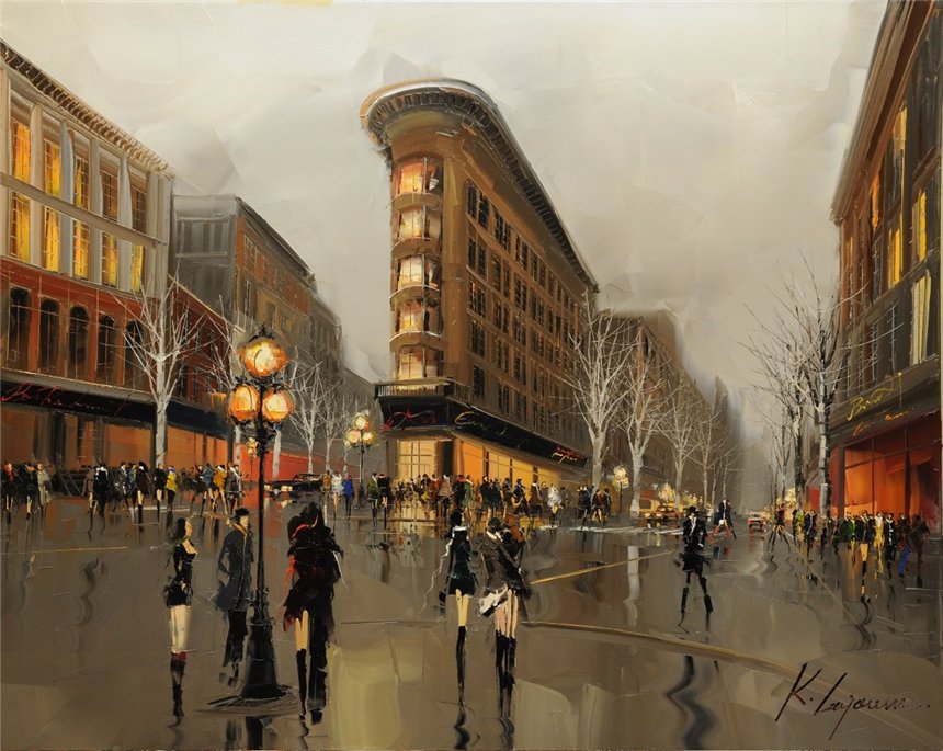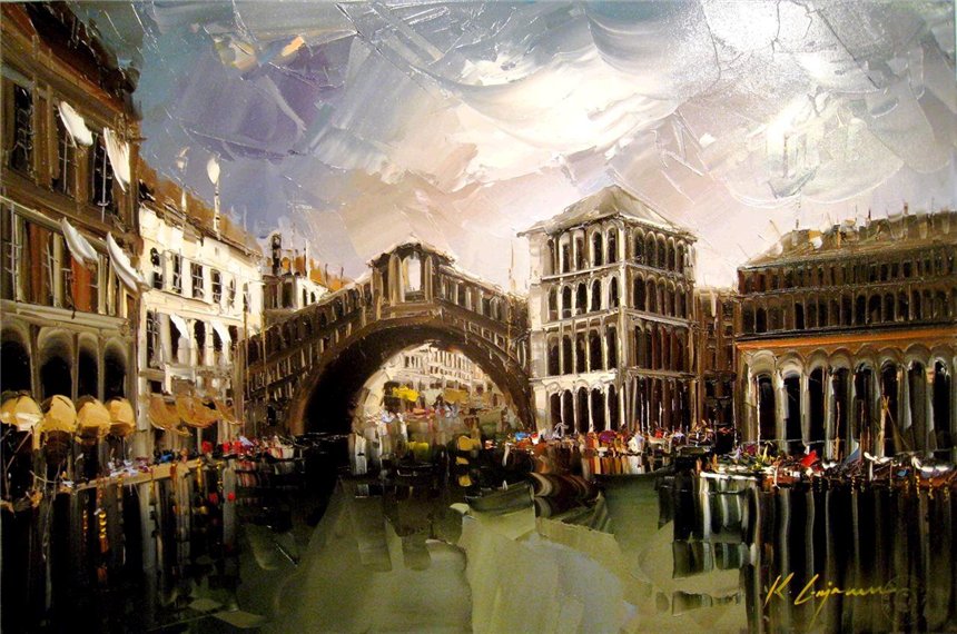 Ливийский художник Kal Gajoum работает в очень необычной технике. Техника работы мастихином сильно отличается от техники использования кисти, и напоминает приготовление бутерброда с маслом. Кончиком мастихина с палитры берется немного краски, затем боковой стороной лезвия краска разносится по полотну и слегка вдавливается в холст. В начале работы используется только самый кончик лезвия, им краску на холст наносят точечно, а затем мастихином делают уверенные движения вниз, чтобы получить нужные линии. Для создания текстуры лезвие вжимают плоско вниз, в краску. Картина, выполненная мастихином, отличается объемной поверхностью.