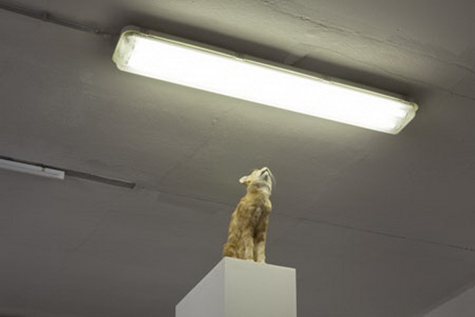 Концептуальная выставка открылась в галерее ZERO в Милане. Это серия странных скульптур, которые дестабилизируют сознание зрителя. Так, например, это рыжий кот, сидящий на вершине высокого постамента и глядящий вверх прямо на лампу дневного света. Автор выставки берлинский художник Майкл Сейлсторф.