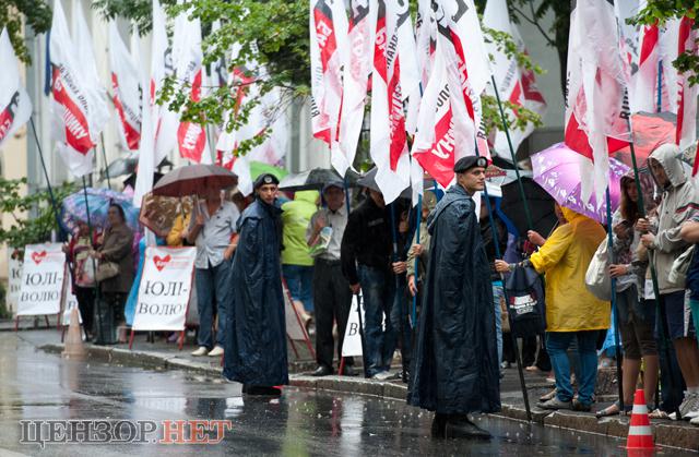 Несмотря на дождь, сотни сторонников экс-премьер-министра Украины Юлии Тимошенко протестуют у здания Высшего специализированного суда Украины в Киеве.