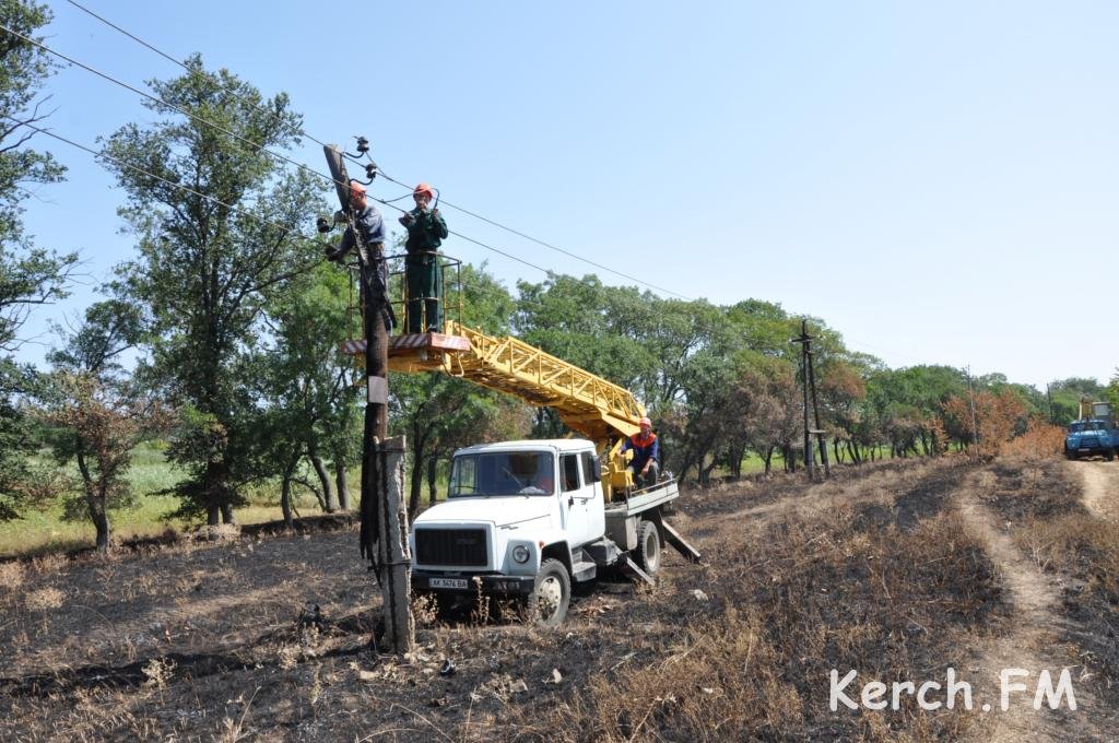Из-за пожара электроснабжение поселка работает в аварийном режиме, на одной линии из двух, сообщает kerch.fm.