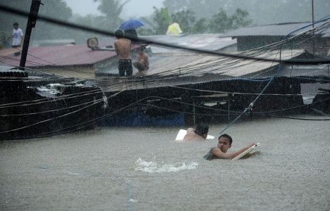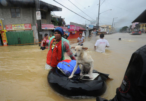 Всего за двое суток на этой неделе в столице Филиппин выпало больше месячной нормы осадков, в результате реки в районе Большой Манилы вышли из берегов, и вода на пике наводнения полностью затопила свыше половины территории гигантского мегаполиса с населением в 12 миллионов человек. Спасатели были вынуждены эвакуировать прямо с улиц людей, стоявших по шею в воде, сообщает ForUm.