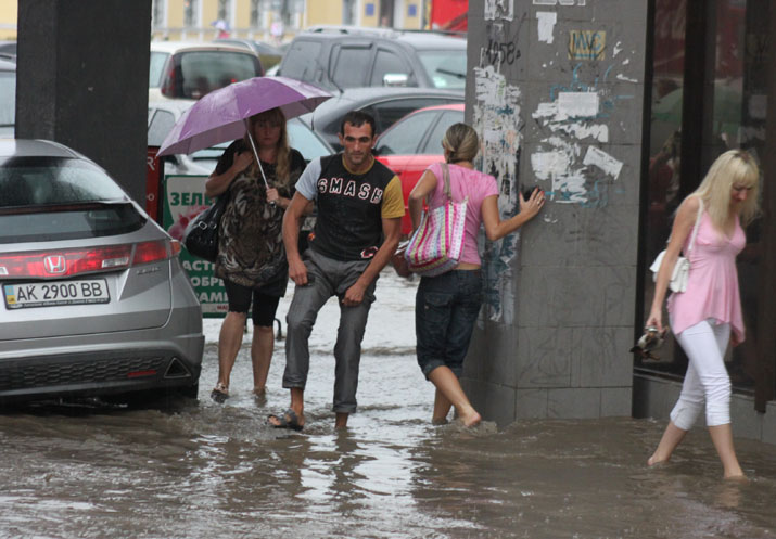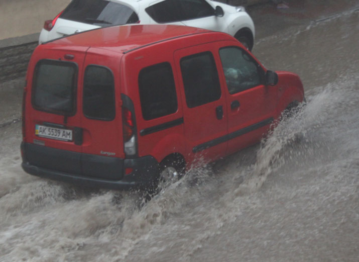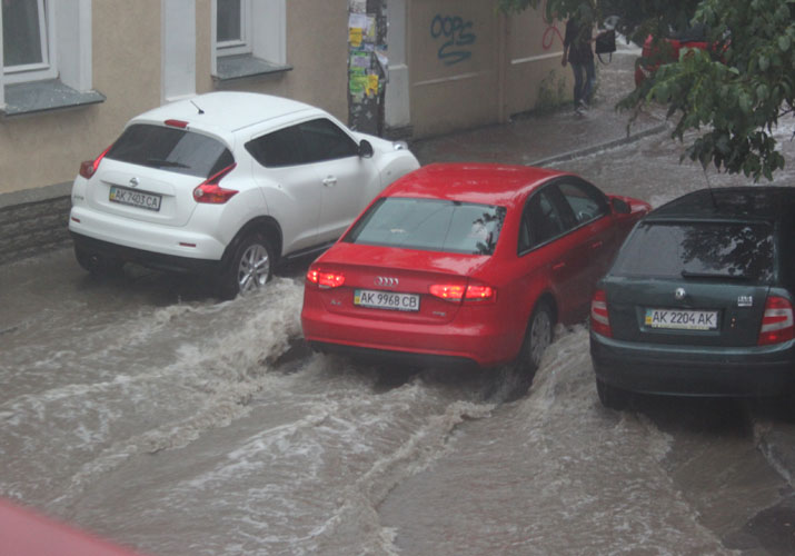 Уровень дождевой воды достигал высоты бордюра, сообщает Comments.UA.