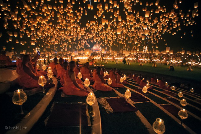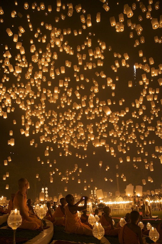 Фотограф Стив Маккерри запечатлел редкие кадры фестиваля воздушных фонариков в Северном Тайланде. Мероприятие называется Yi Peng и проводится в период полнолуния в ноябре.