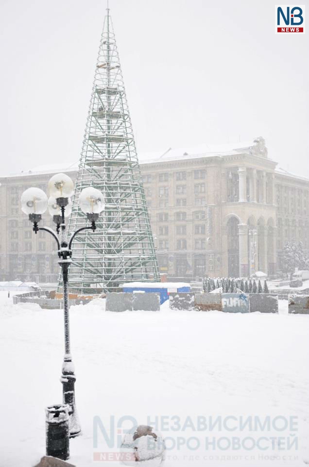 Сборка каркаса новогодней елки на Майдане Независимости, которая началась еще в ноябре, наконец завершилась. Рабочие уже готовят к установке искусственные ветки. В этом году елка будет искусственной, но внешне будет напоминать живое дерево. Ее высота составит 34,8 м, диаметр по нижним ярусам ветвей 12,5 м, вес до 30 т. Верхушка дерева будет представлять собой пиксельный купол с эффектом 3D.