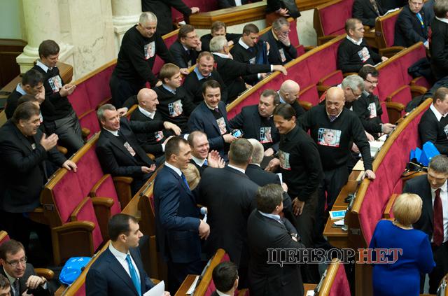 Оппозиция пришла в Раду в футболках с требованием отпустить Тимошенко и не пустила в зал Табаловых...