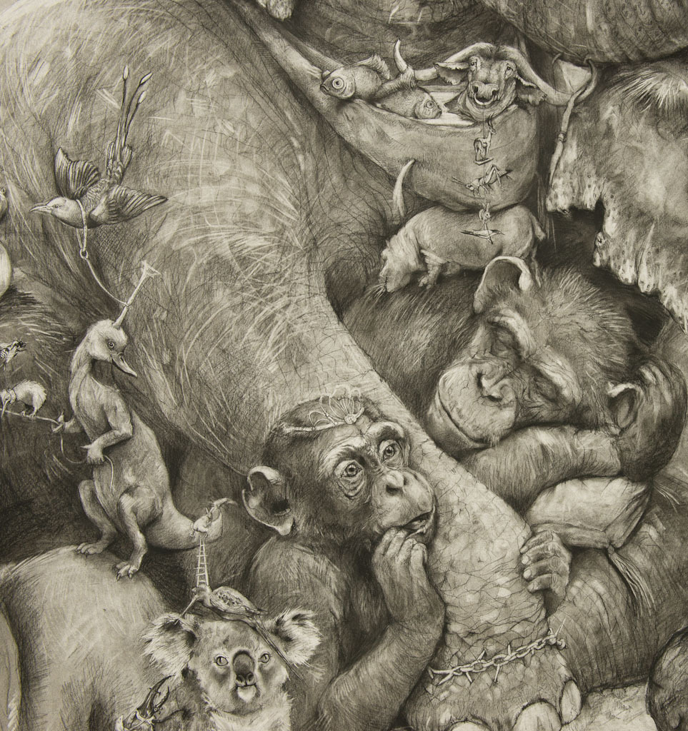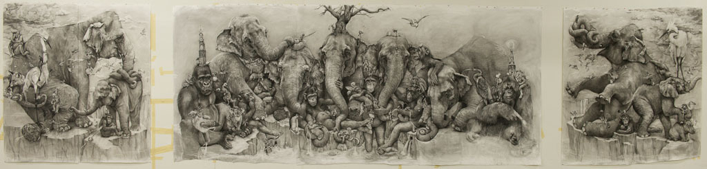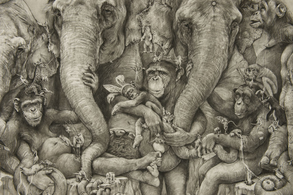 Представляем вашему вниманию работу американской художницы Адонны Карэ, которая стала победительницей художественного конкурса ArtPrize в городе Гранд Рэпидс в штате Мичиган, получив награду в категории «Народный выбор» и приз в 200 000 долларов. Победу ей принес ее триптих «Слоны» размером 10 м шириной и более 2 м высотой. Этот «рисуночек» был полностью выполнен карандашом, а его детализация просто поразительна.