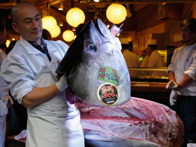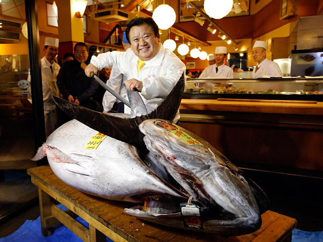 В Японии обновлен традиционный новогодний рекорд: на первых в году торгах на оптовом рыбном рынке Цукидзи в Токио гигантский тунец продан за умопомрачительную сумму в 1,8 млн. долларов. Голубой тунец весом 222 кг, выловленный у берегов префектуры Аомори, хотя и не стал рекордсменом по весу, но стал рыбой с самым дорогим мясом. В прошлом году на этом же аукционе голубой тунец ушел за 736 тысяч долларов.