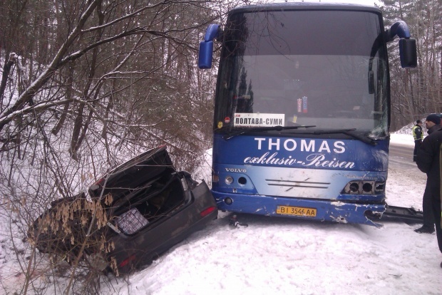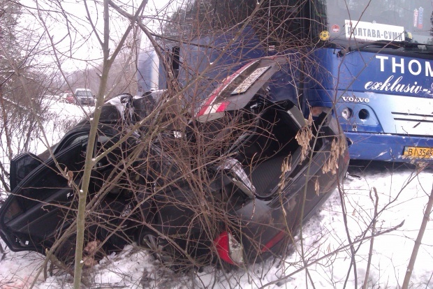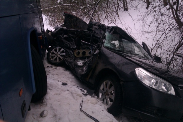 На 42 км автодороги Б.Рублевка-Полтава водитель автомобиля Chevrolet Epica на скользком участке дороги не выбрал безопасную скорость, не справился с управлением и выехал на полосу встречного движения, где совершил столкновение с автобусом Volvo 12 600.