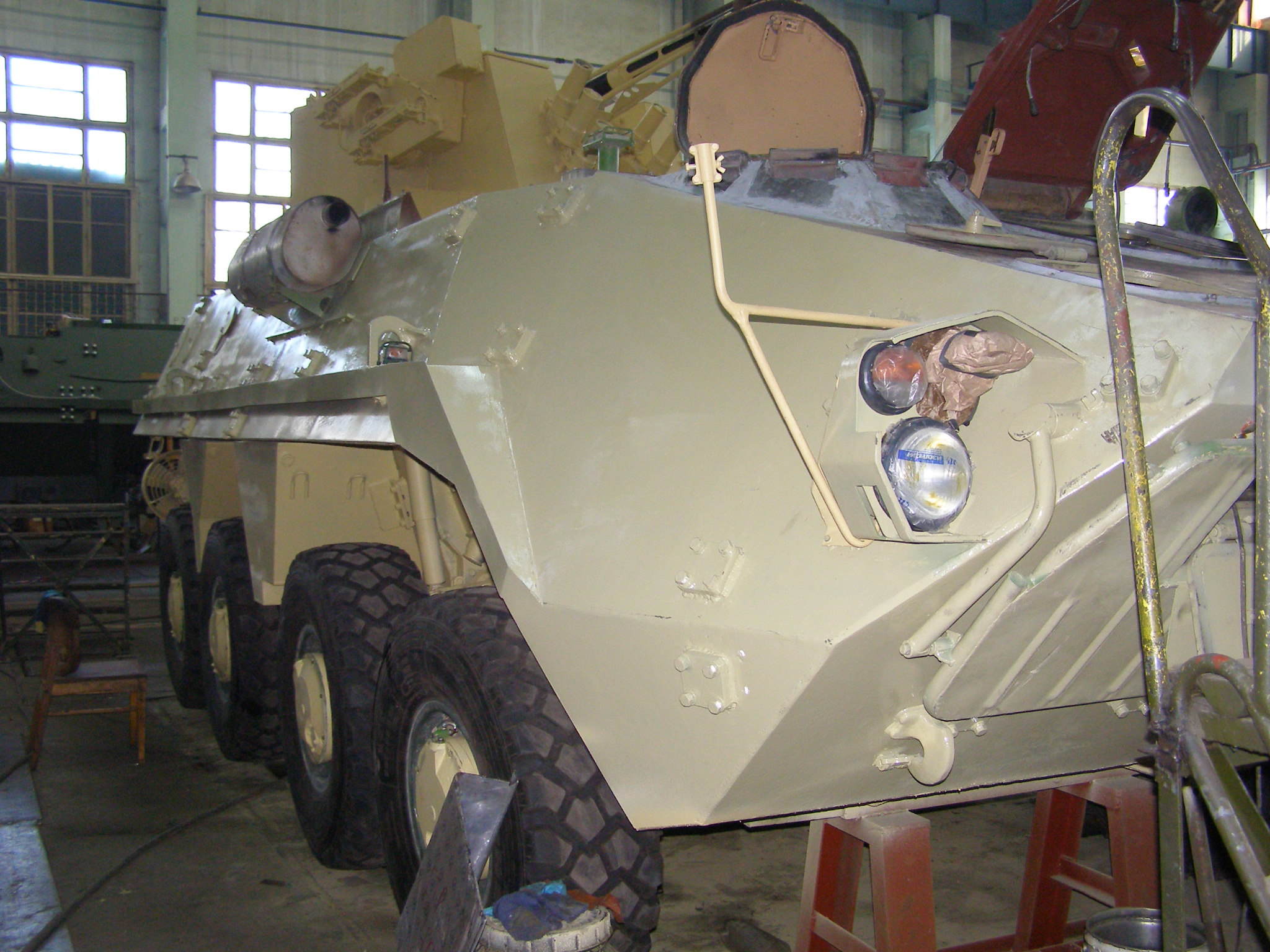 «Мы изменили носовую часть бронетранспортера, усилили его защиту: если в базовой версии были стекла, то теперь этого нет. Также мы изменили и кормовую часть БТР-4: раньше там была двухстворчатая дверь, теперь же на ее месте откидная аппарель (пологий подъем, ред.), которая увеличивает проем для высадки десанта и позволяет загрузить в машину габаритные грузы. Кроме того, новая техника оснащена люками для командира и механика-водителя», рассказал замначальника конструкторского бюро Юрий Волченко, сообщает Сегодня.ua.