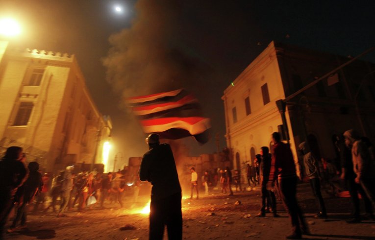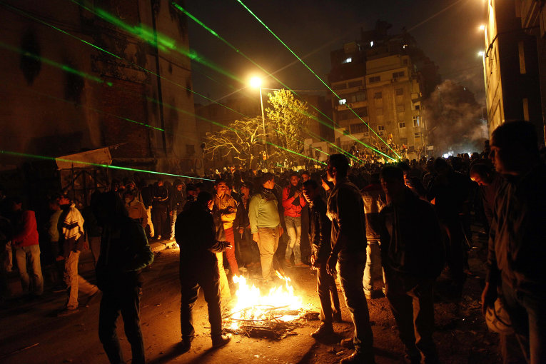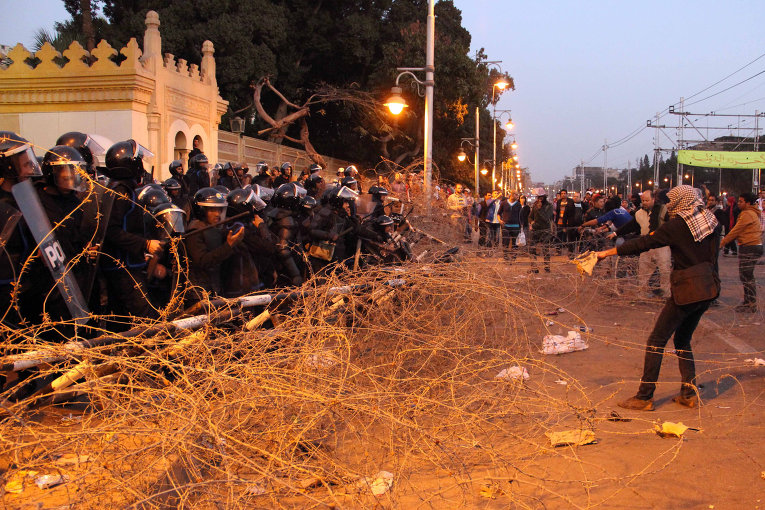 Беспорядки, начавшиеся во вторую годовщину египетской революции, продолжаются во многих городах Египта, откуда приходят данные об ожесточенных стычках радикальной молодежи с полицией, охраняющей государственные объекты. Наиболее яростные столкновения, помимо Каира, отмечены в городах Александрия, Суэц, Исмаилия, Думьят и Махалля эль-Кубра. В Каире продолжаются стычки радикальной молодежи с полицией у президентского дворца и у здания государственного телевидения. Несколько сотен человек пытались штурмовать телецентр, забрасывая солдат Национальной гвардии, камнями и бутылками с зажигательной смесью, поджигая автомобильные покрышки. В столкновениях уже погибли 8 человек, сотни получили ранения.