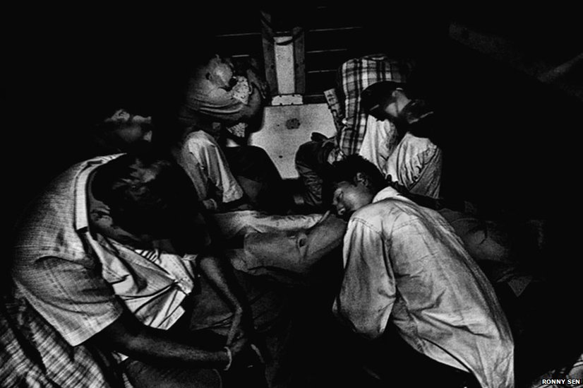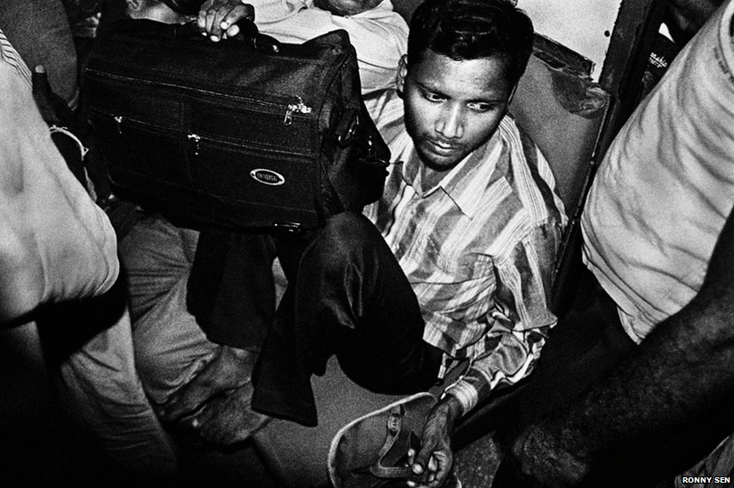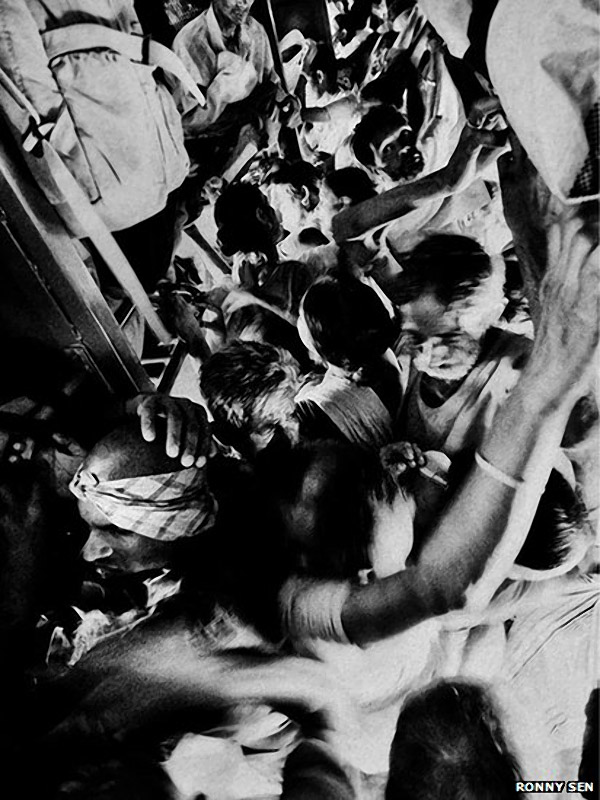 В распоряжении государственной железнодорожной службы Индии 7000 пассажирских поездов, которые ежегодно перевозят около 13 миллионов людей. Фотограф Ронни Сен любит фотографировать индийских пассажиров, путешествующих в вагонах третьего класса. «Без травм еще ни разу не обходилось», признается фотограф.