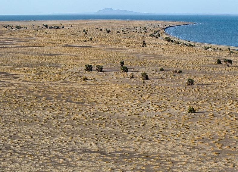 Стоя на берегу озера Туркана (также известного как озеро Рудольф) на границе Кении и Эфиопии, можно подумать, что вы находитесь на берегу моря волны накатывают на песчаный пляж, дует сильный ветер, а рыбацкие лодки, пришвартованные неподалеку, готовы отчалить. Однако это не море, а самое большое в мире постоянное озеро в пустыне, а также самое большое щелочное озеро, площадью более 6 тысяч квадратных километров. Местное население называет озеро «Нефритовым морем» из-за особого сине-зеленого оттенка здешней воды.