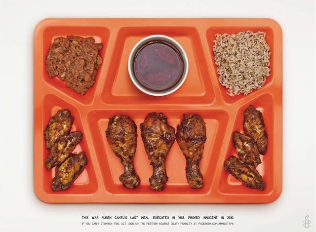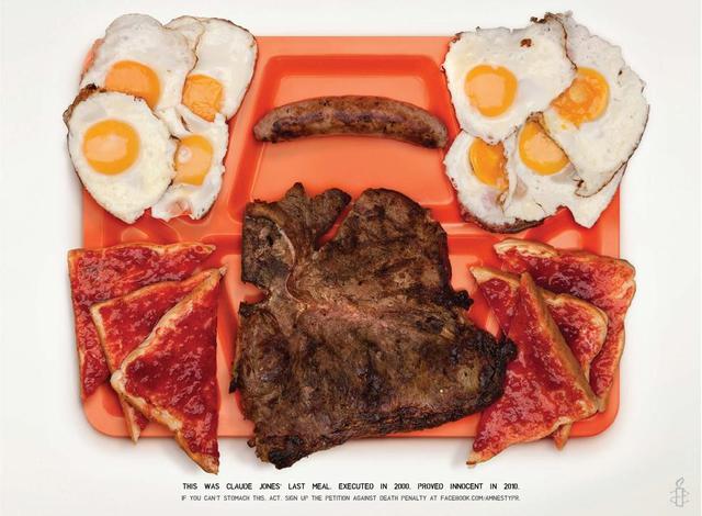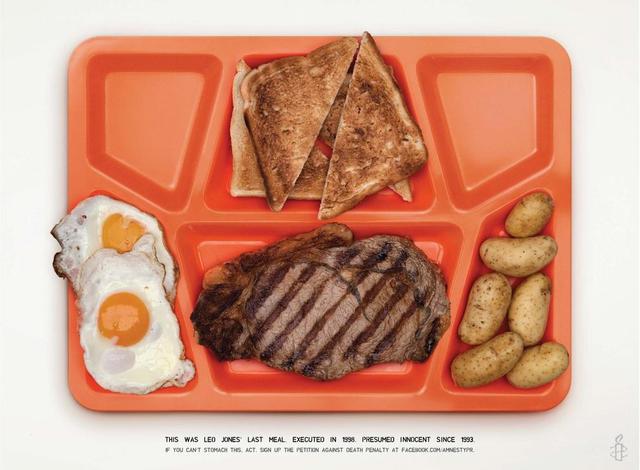 На фото последнее, что съели перед казнью несправедливо приговоренные к смерти. И подписи: казнен в 2000, признан невиновным в 2010; казнен в 1997, признан невиновным в 2000; казнен в 1993, признан невиновным в 2010 и т.д., сообщает Цензор.Нет со ссылкой на блогера drugoi.