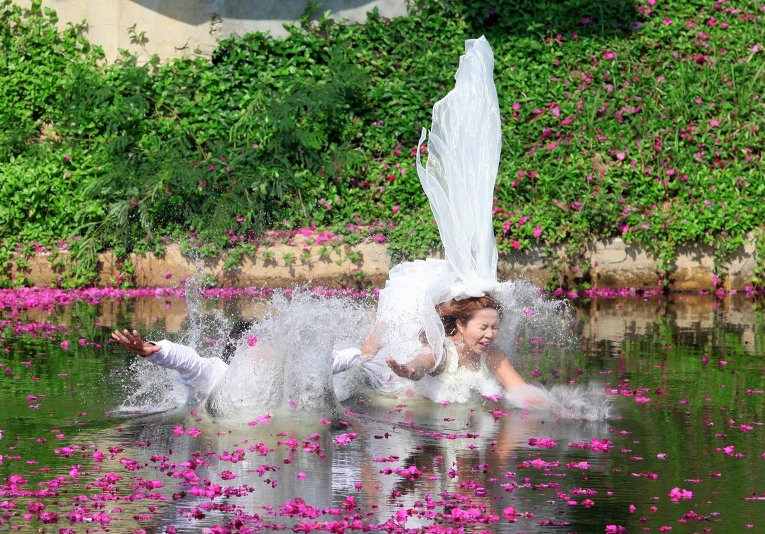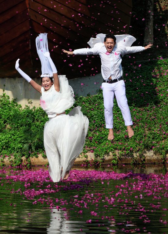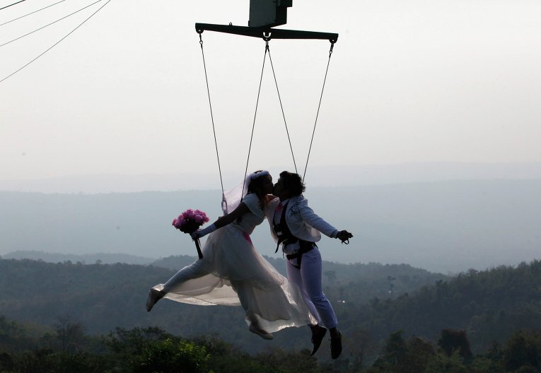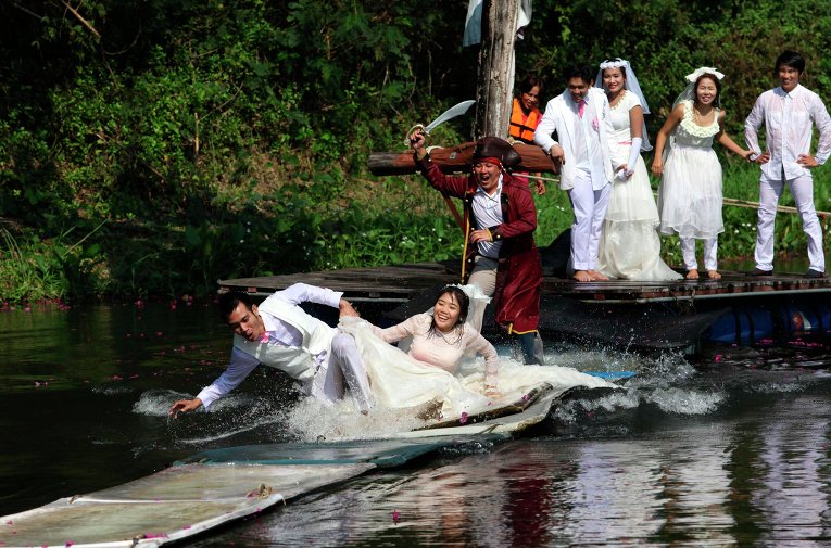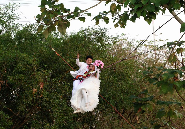 В провинции Прачинбури в Таиланде открылся необычный свадебный курорт. Влюбленных здесь ждут различные испытания, включая прыжки с тарзанки и купание в бассейне.