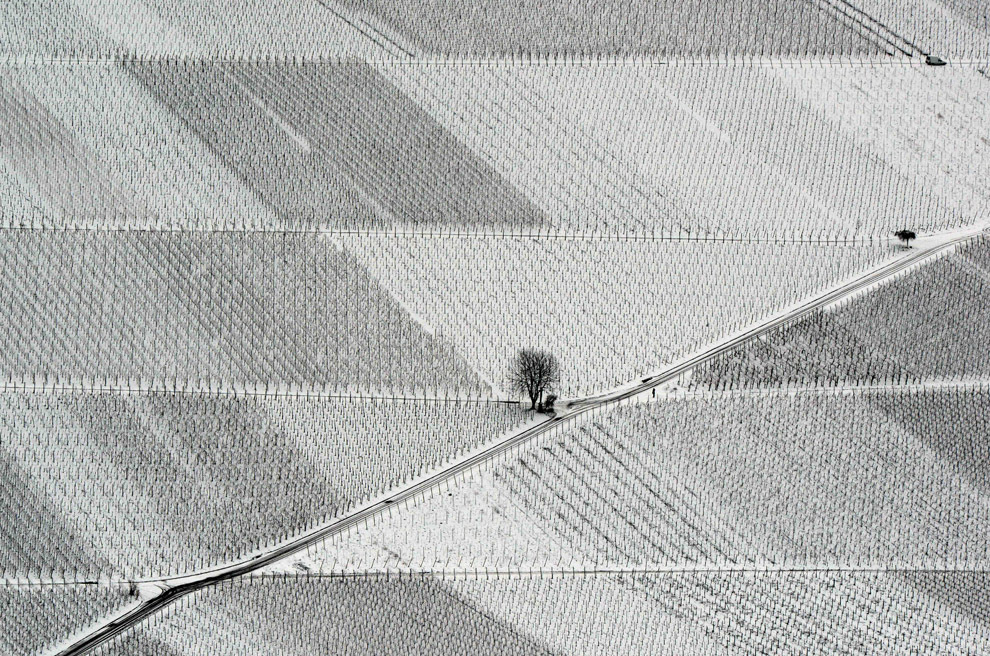 Заснеженные виноградники недалеко от Эбингена, Германия