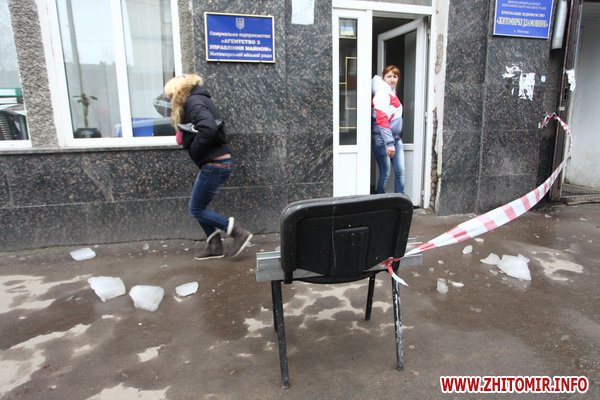 1 марта около 11.50 по ул. Щорса, возле входа в здание, где находятся офисы КП «Реклама», «Житомирбудзамовник» и других коммунальных предприятий Житомирского горсовета, большой кусок льда упал на голову девушке, которая шла по тротуару.