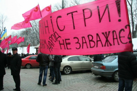 Несколько сотен сторонников Социалистической партии Украины провели акцию под стенами здания правительства «Кабмин, давай, до свидания», приуроченную к третьей годовщине премьерства Николая Азарова. Митингующие требовали отставки правительства. В руках они держали политическую символику, а также плакаты с надписями «Верните права детям войны», «Детям войны достойную старость», «Министры, вам народ не мешает?». Кроме того, активисты запустили в небо три огромных воздушных шара с надписью «Кабмин, до свидания».