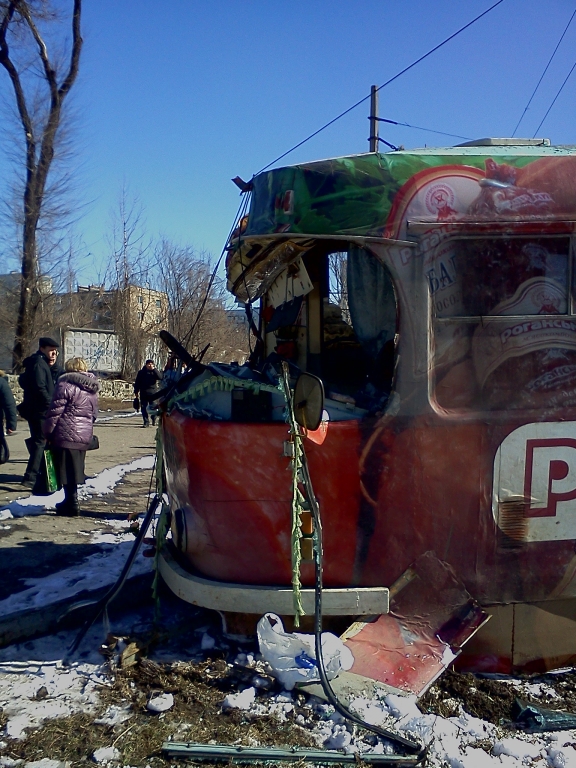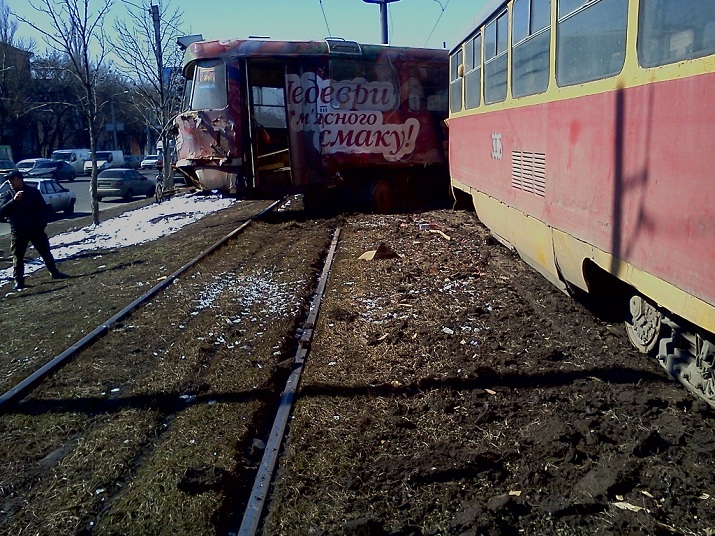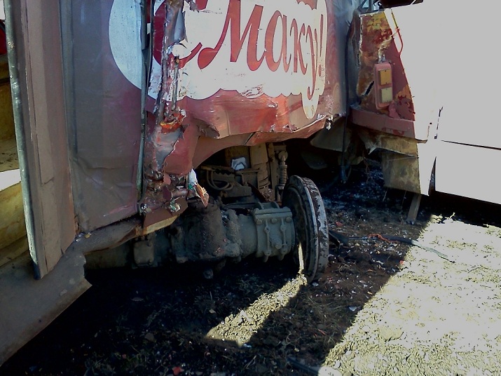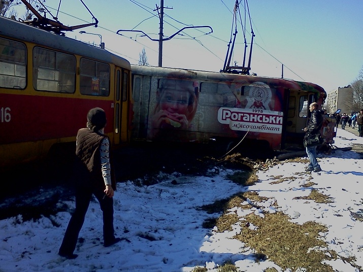 «Сошла передняя тележка первого вагона, ушла вправо, порвало сцепку, первый вагон развернуло и потом его догнал второй», сообщил очевидец.