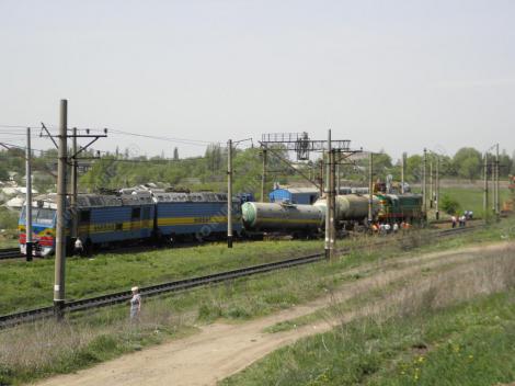 В четверг, 2 мая, в 7:40 в Горловке (Донецкая область) на 6 км железнодорожного пути Горловка-Байрак сошли с рельсов электровоз и три железнодорожных цистерны грузового поезда. По данным местных СМИ, слетевшие с рельс цистерны предназначались для перевозки аммиака, но, к счастью, во время происшествия цистерны были пустыми. На месте происшествия работала оперативная группа Главного управления ГосЧС в Донецкой области.