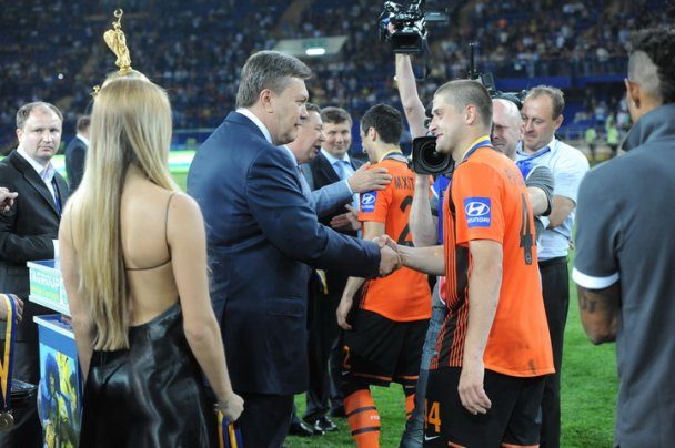 Медали и поздравления футболисты, тренер «Шахтера» Мирча Луческу и президент клуба Ринат Ахметов получили из рук президента Украины Виктора Януковича.