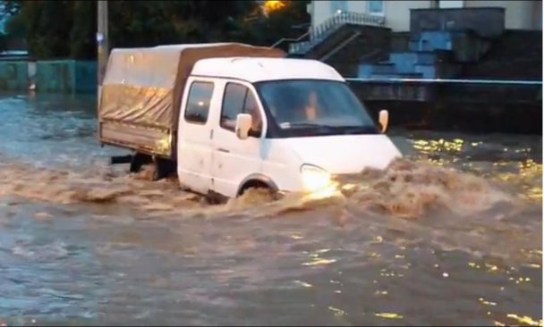 На городских улицах автомобили едва ехали, а пешеходам приходилось «переплывать» тротуары, сообщает ТСН.