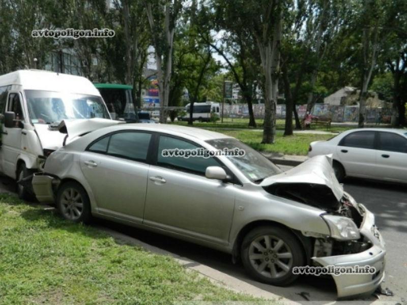 В среду, 19 июня, около полудня на проспекте Ленина в Николаеве микроавтобус маршрутного такси Volkswagen врезался в припаркованные автомобили Toyota и ВАЗ-21099.