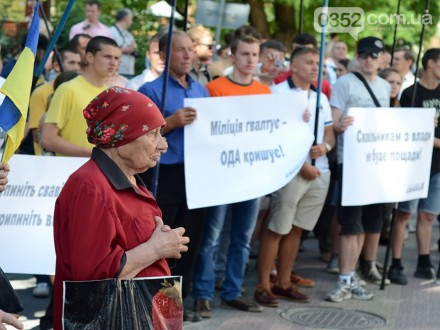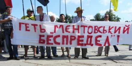 Зато во Львове около 100 участников акции требовали переаттестации всех сотрудников милиции. Кроме политической символики, митингующие держали плакаты с надписями: «Покращення» от Захарченко: убийства, изнасилования, произвол«, «Врадиевка восстала восстанет Львовщина », «Воля нации против произвола режима!», «Остановите беспредел прекратите войну», «Беспредельщикам из властей не будет пощады!».