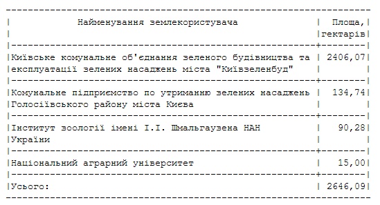 Интересно, что еще в 2007 году Президентом Виктором Ющенко был подписан указ «О создании национального природного парка «Голосеевский», в котором, в частности, говорилось о том, что с целью сохранения, воспроизводства и рационального использования особо ценных природных комплексов и объектов Киевского Полесья, а также для улучшения экологического состояния Киева постановляется создать на территории города Киева национальный природный парк «Голосеевский» с подчинением его Министерству охраны окружающей природной среды. Указом устанавливалась площадь земель национального природного парка «Голосеевский» 4525,52 гектара, в том числе 1879,43 гектара земель, которые изымаются в установленном порядке у Киевского коммунального объединения зеленого строительства и эксплуатации зеленых насаждений города «Киевзеленстрой» и предоставляются национальному парку «Голосеевский» в постоянное пользование, и 2646,09 гектара земель, которые включаются в его состав без изъятия у землепользователей.