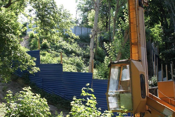 А вот такую картину можно увидеть на улице Максима Рыльского, проходящей в пределах парка тут тоже идёт захват земли.