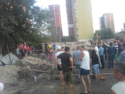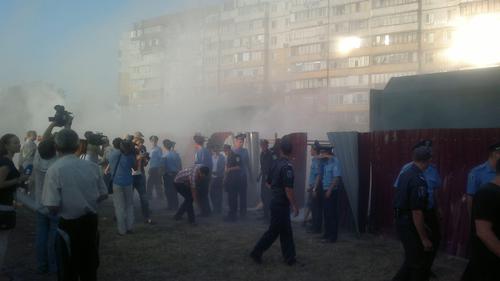 7 августа жители Троещины штурмом взяли стройплощадку. Люди сломали ограждение вокруг строительной площадки и разогнали группу охранников, молодых людей спортивного телосложения, численностью 50 70 человек, а также строителей. Охрана пыталась отбить штурм, укрепив забор вокруг площадки песком, и бросая в людей за ограждением песок, камни и, по некоторым свидетельствам, даже поливая их растопленной смолой и обрызгивая из огнетушителей.