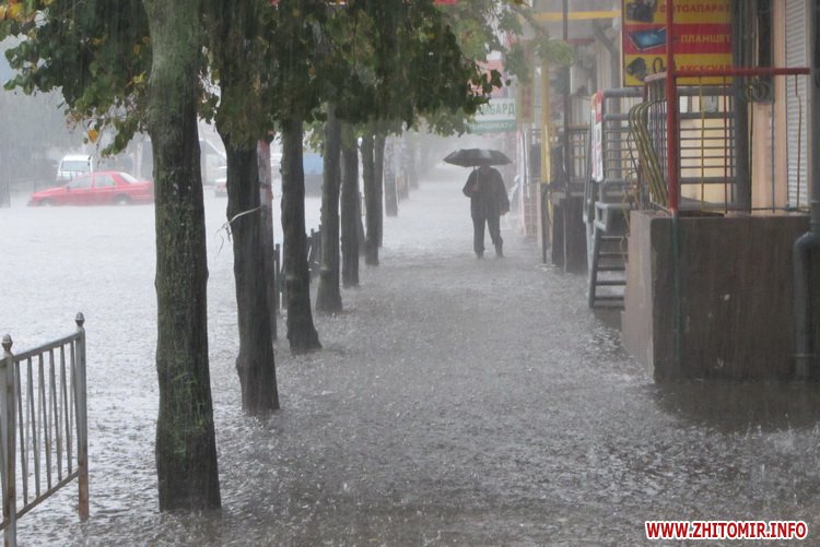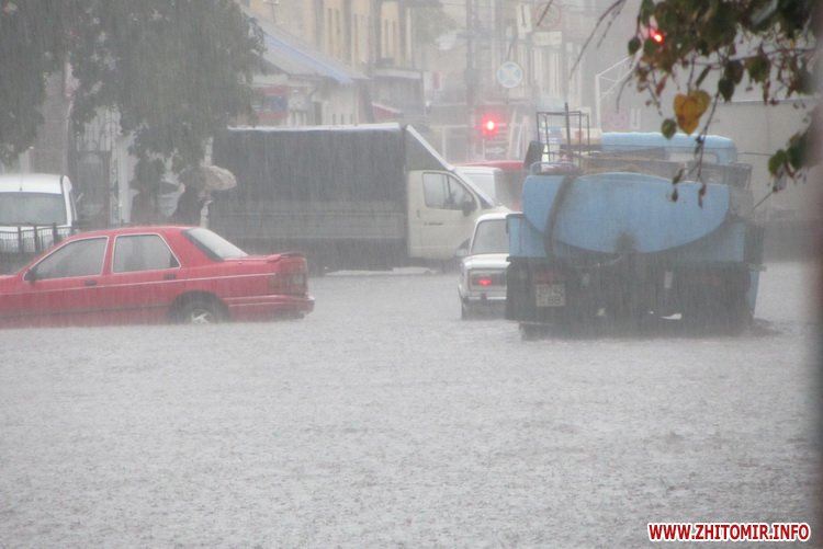 Ливень, который начался под утро 12 сентября и шел несколько часов, превратил центральные улицы Житомира в настоящие реки.