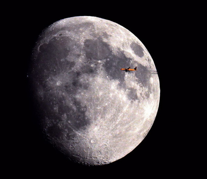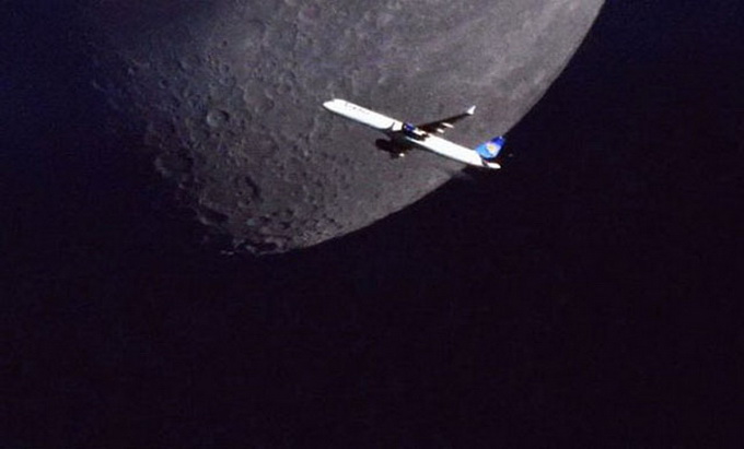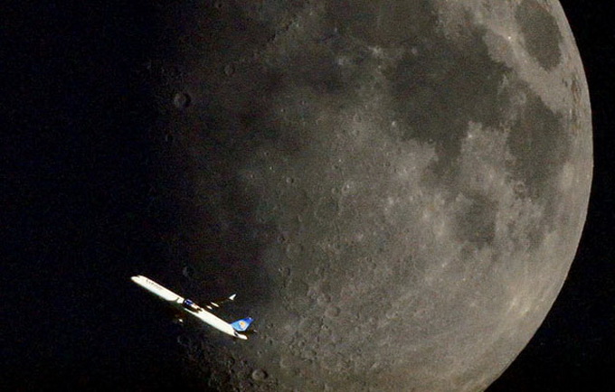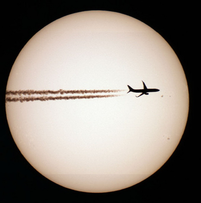Эти удивительные фотографии вовсе не фотошоп. Серия принадлежит фотографу Себастьену Лебриганду, который этим летом снимал самолеты, пролетающие на фоне Солнца и Луны, с помощью специального телескопического объектива.