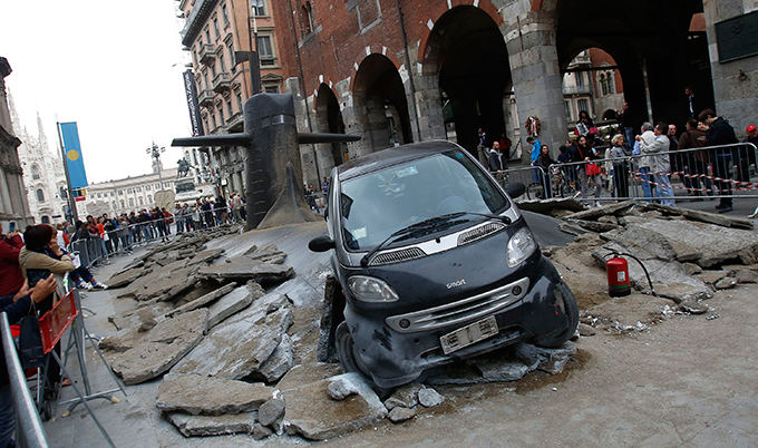 Сотрудники рекламного агентства чуть не довели жителей Милана до массовых сердечных приступов, организовав в центре города чрезвычайно оригинальную рекламную компанию.