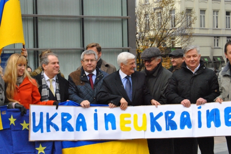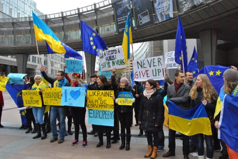 Во вторник, 26 ноября, более 100 украинцев собрались на площади Люксембург перед зданием Европейского парламента в Брюсселе на митинг в поддержку подписания Украиной и ЕС Соглашения об ассоциации.