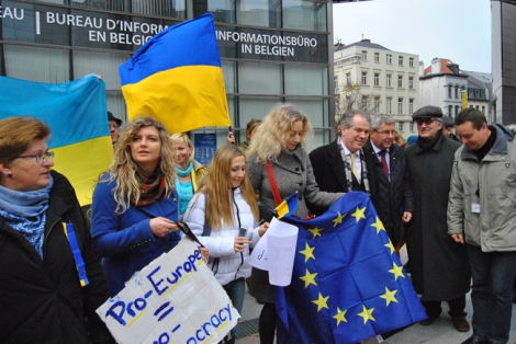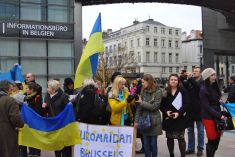Отметим, что участники брюссельского Евромайдана держали в руках флаги ЕС и Украины, а также плакаты: «Да соглашению в Вильнюсе», «Украина это Европа», «Никогда не опускай рук», «Молодежь за Европу».
