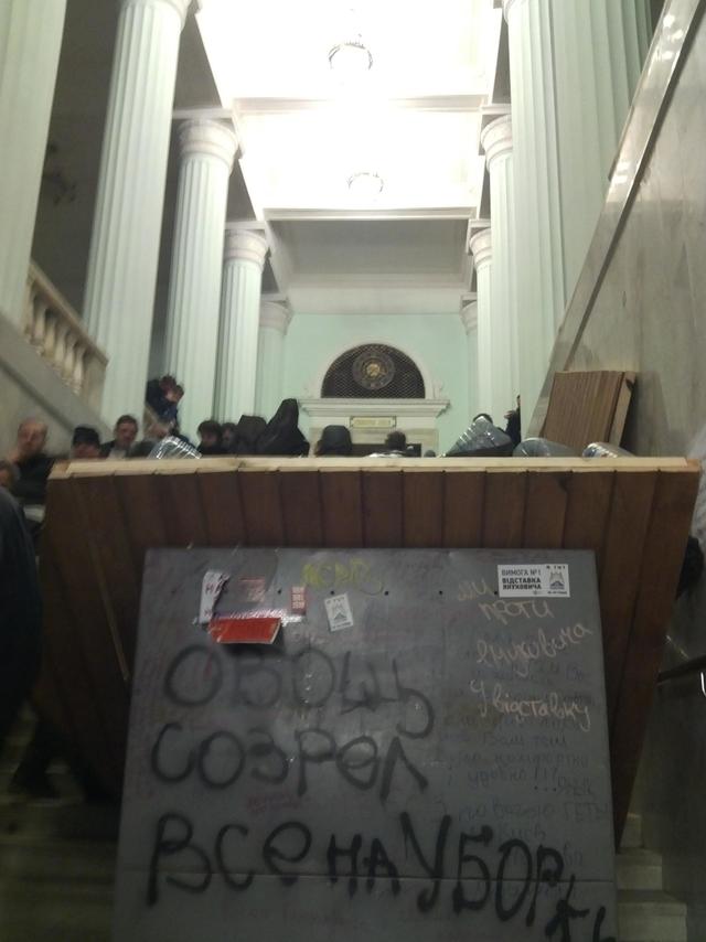 Также, около 2 тысяч человек продолжили блокаду Банковой со стороны Лютеранской и Институтской. Еще около тысячи активистов забаррикадировались в здании КГГА.