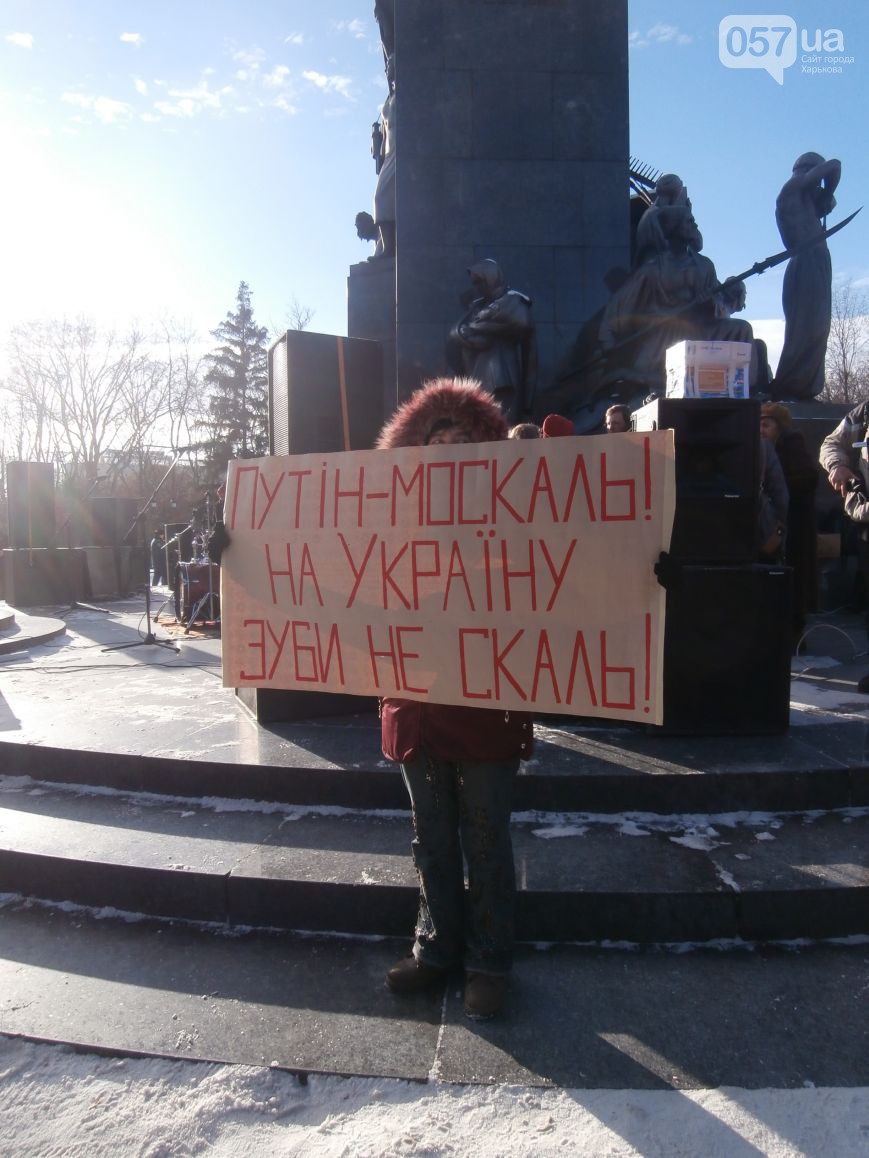 Не успел закончиться митинг пророссийских и коммунистических организаций на площади Свободы, как у памятника Шевченко начали собираться приверженцы европейского пути для Украины. Буквально за полчаса они полностью заполонили площадку, сообщает 057.ua.
